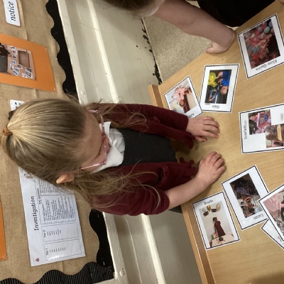 Photographs of the children’s previous birthday celebrations were displayed for them to explore. This encouraged memory recall, discussion, and social interaction as children shared their experiences and reflected on past events.