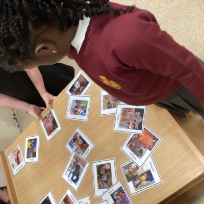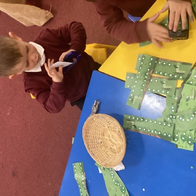 Our ‘Finding a Friend’ story map was cut into sections. We worked together to put the sections back in the right order and used them to retell the story.