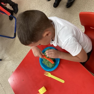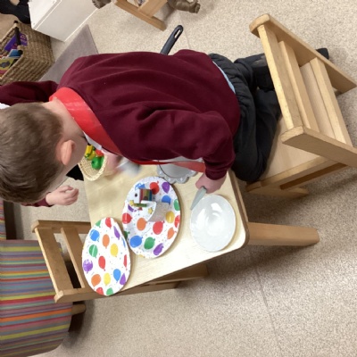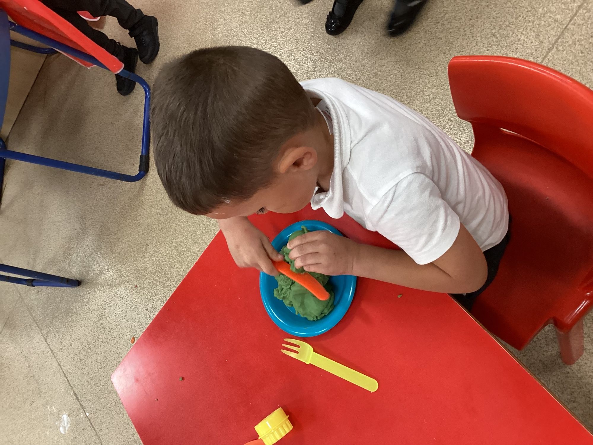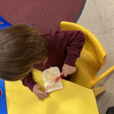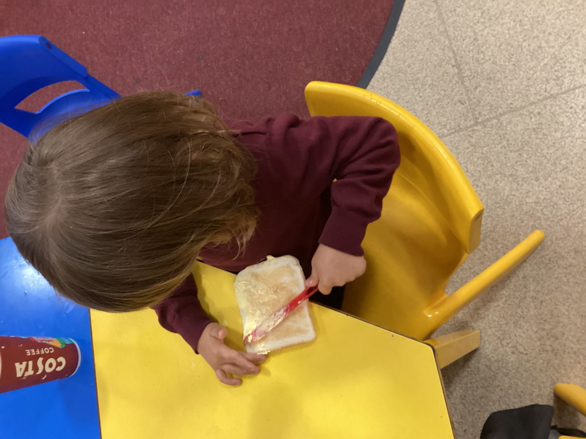 In the playdough area, we've been practising our knife and fork skills, learning how to cut with care. We then put these skills into action by spreading butter on our toast! We explored our sense of taste. We really enjoyed eating our toast after.
