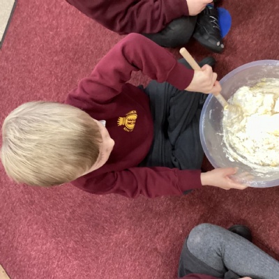 The children discovered a mystery present with a question mark on it and wondered who it could belong to and what the occasion might be. We talked about celebrations where presents are given, such as Christmas and birthdays. When we opened the present, it contained candles, balloons, cards, and invitations – it was a birthday celebration! The children discussed why birthdays are celebrated and watched a video clip of Dexter’s birthday, talking about all the things they saw at the party. We also followed instructions to bake a birthday cake, giving the children the opportunity to practice measuring, mixing and to understand one of the key activities that happens during birthday celebrations.