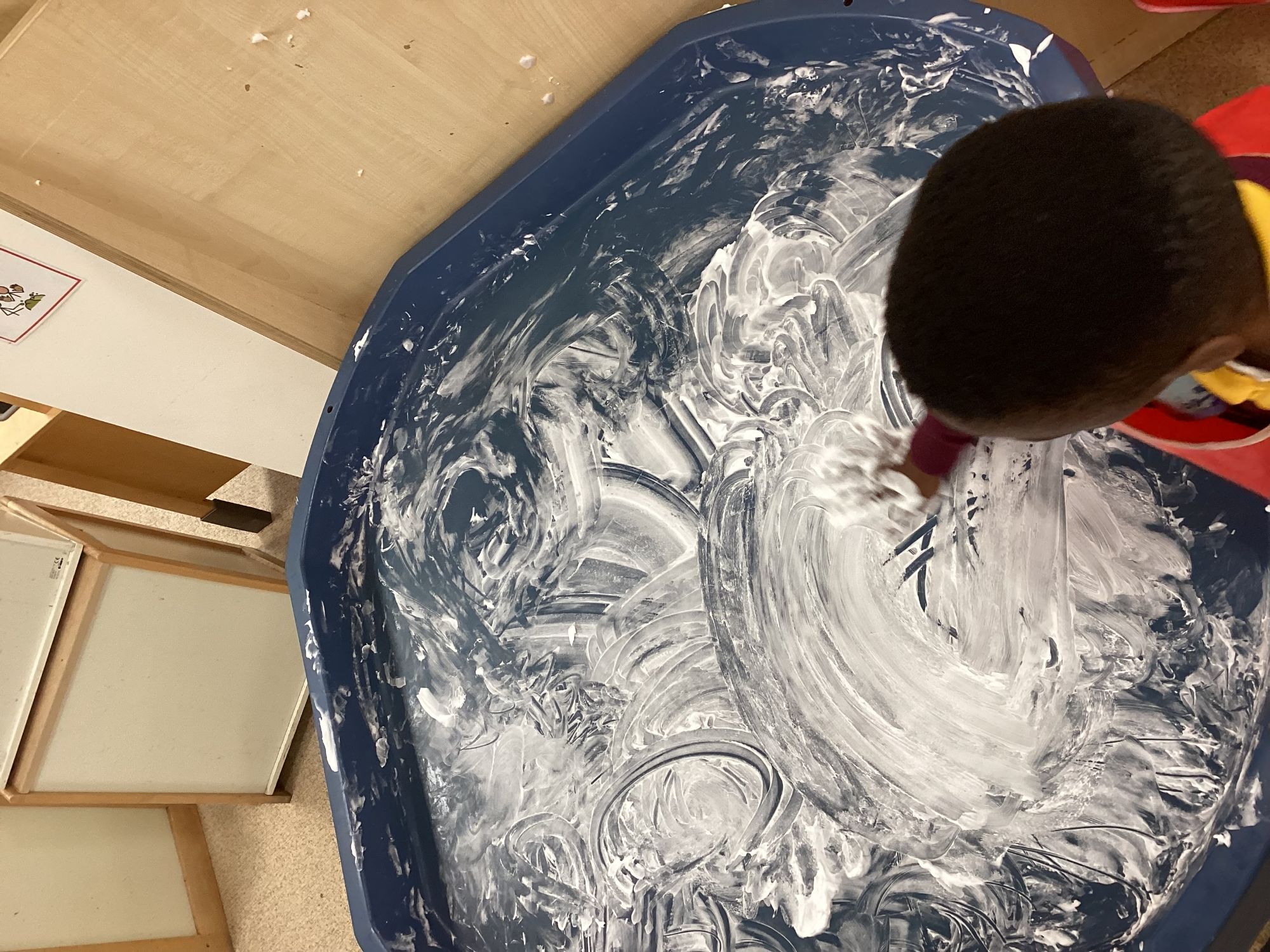 The children had a fantastic time exploring shaving foam this week! They enjoyed the soft, fluffy texture as they squished, spread, and made patterns with it. Using their hands and fingers, they practised mark-making and sensory play.