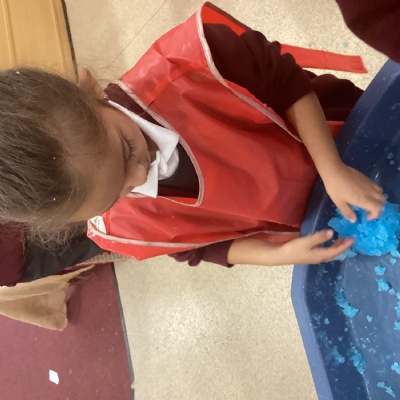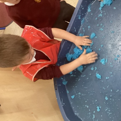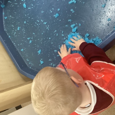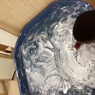 The children had a fantastic time exploring shaving foam this week! They enjoyed the soft, fluffy texture as they squished, spread, and made patterns with it. Using their hands and fingers, they practised mark-making and sensory play.