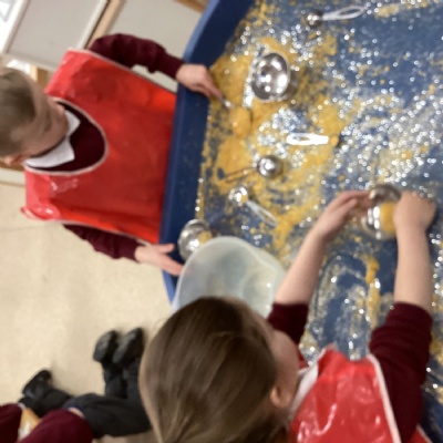 The children used all their senses to explore the jelly bath! They were fascinated by its colours, wobbly texture, and cool, squishy feel. They used their hands to squish and scoop. They enjoyed watching it move and jiggle.