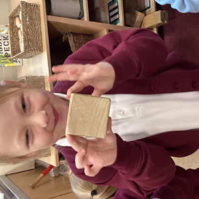 We noticed squares and rectangles all around us and began to describe their properties. We described the properties of squares and rectangles using the language ‘sides’, ‘straight’, ‘corners.’ We learnt that both rectangles and squares have 4 straight sides and 4 corners. We’re beginning to understand that squares have 4 sides which are equal in length.