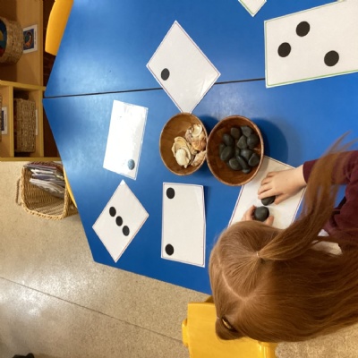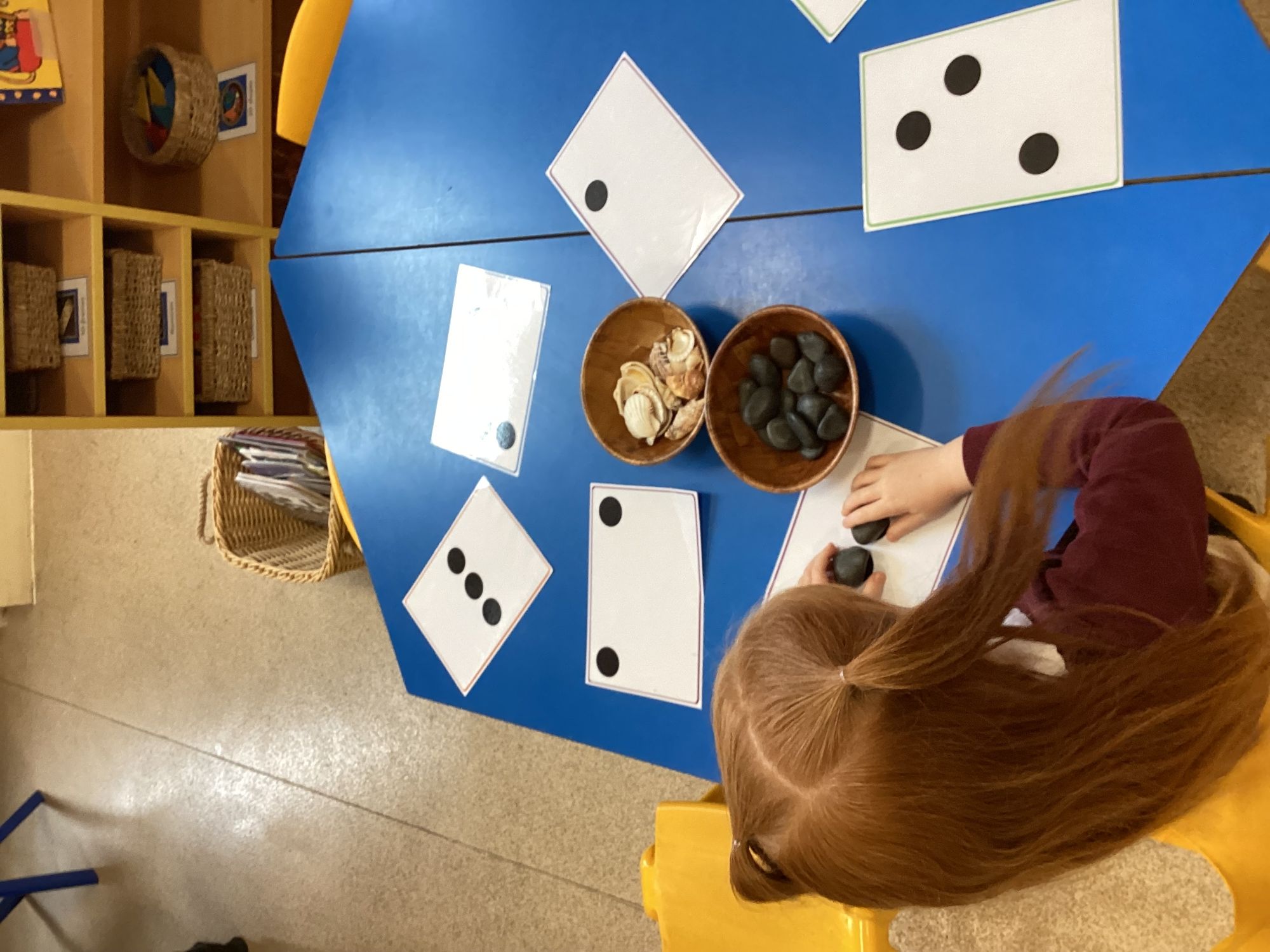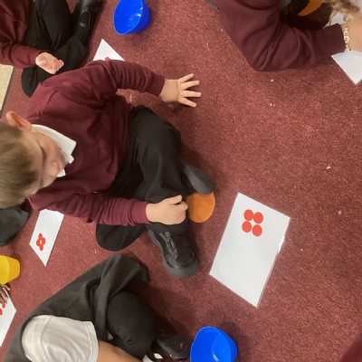 The children were encouraged to recognise small groups of objects by subitising — being able to just see how many there are without needing to count each one. Through games and hands-on activities, they developed their number sense and built confidence with quantities in a fun and natural way.