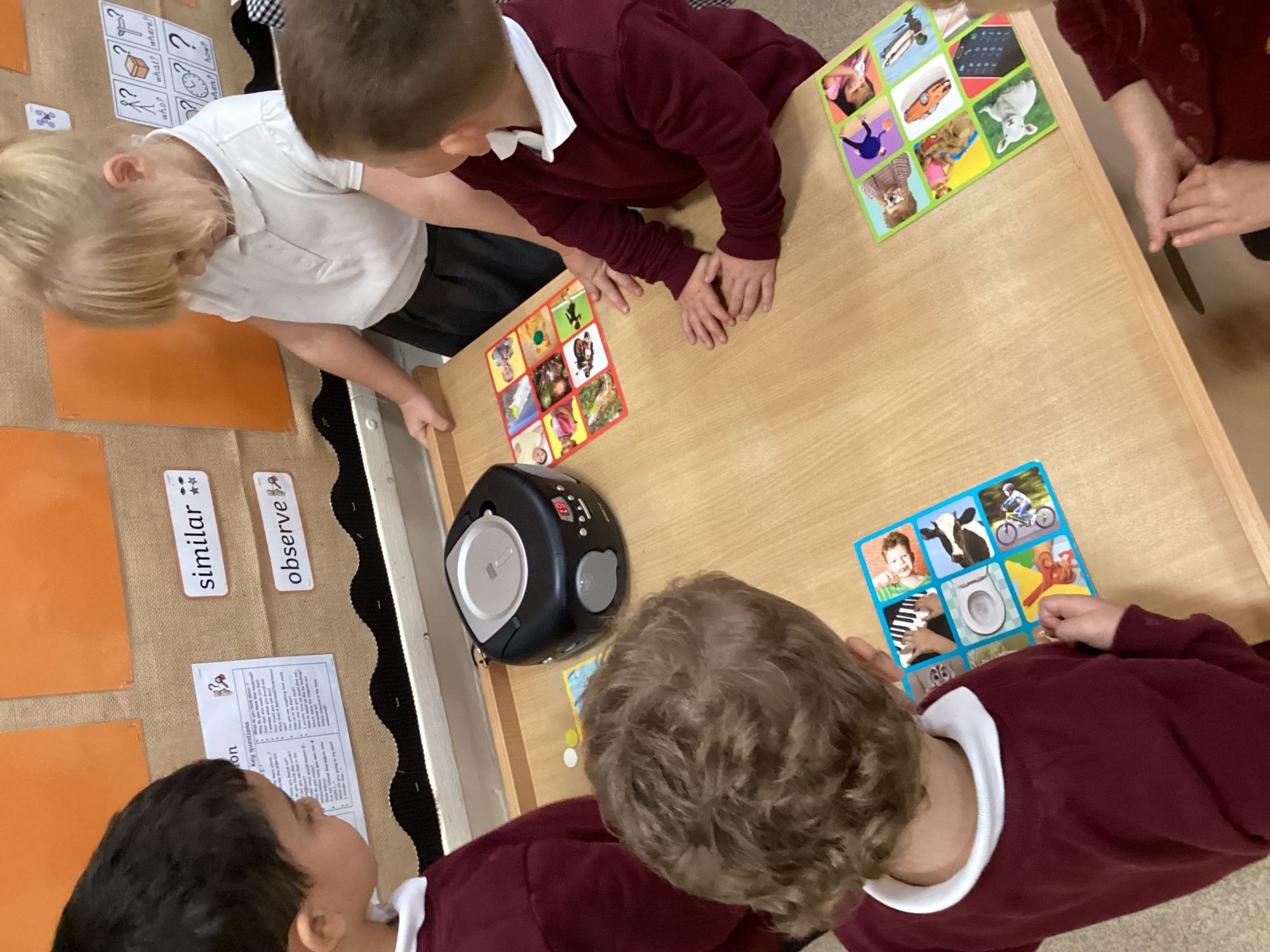 We also explored our sense of hearing. The children enjoyed playing a listening game where they matched everyday sounds from a CD to the photographs on their lotto boards.