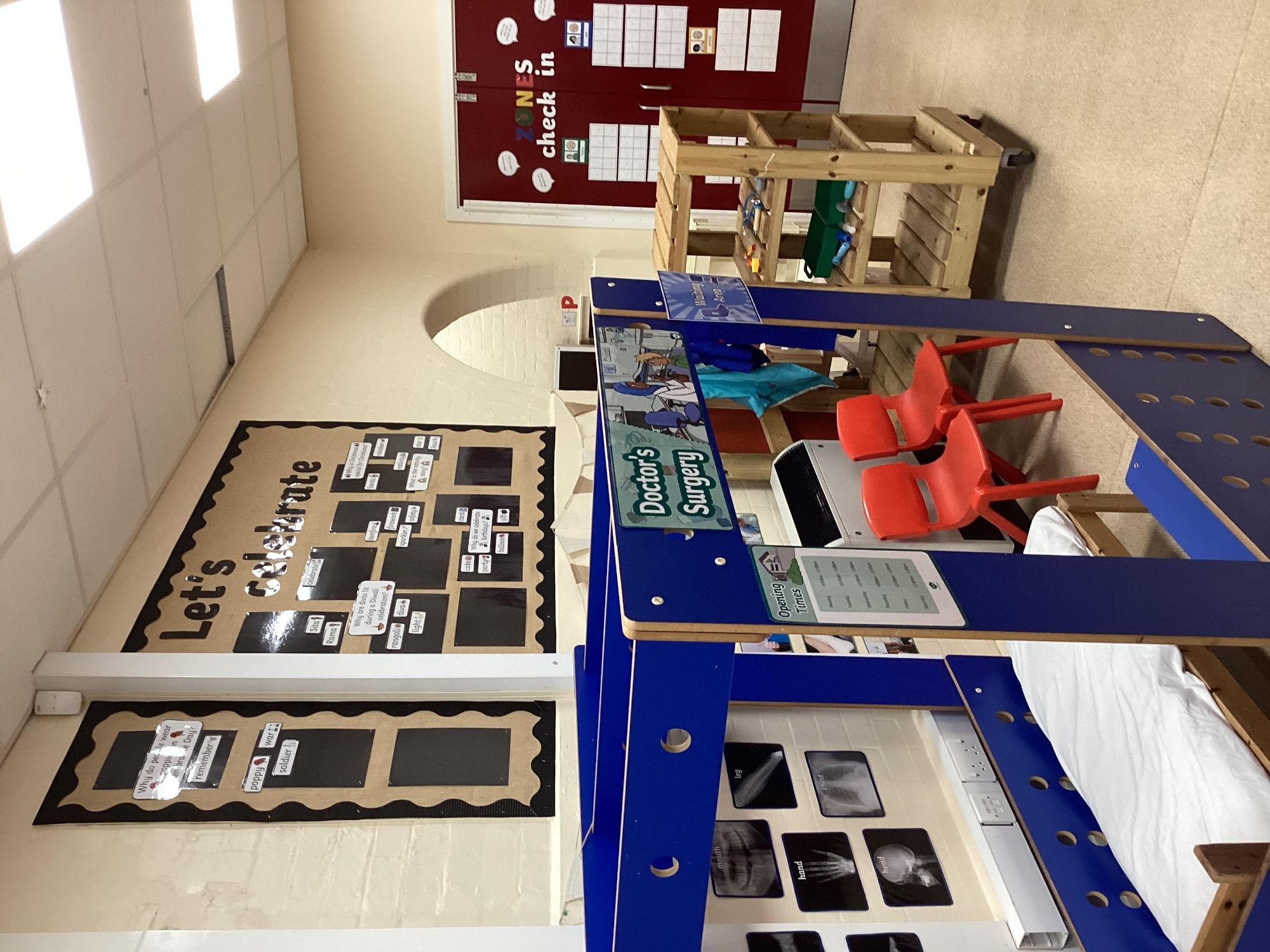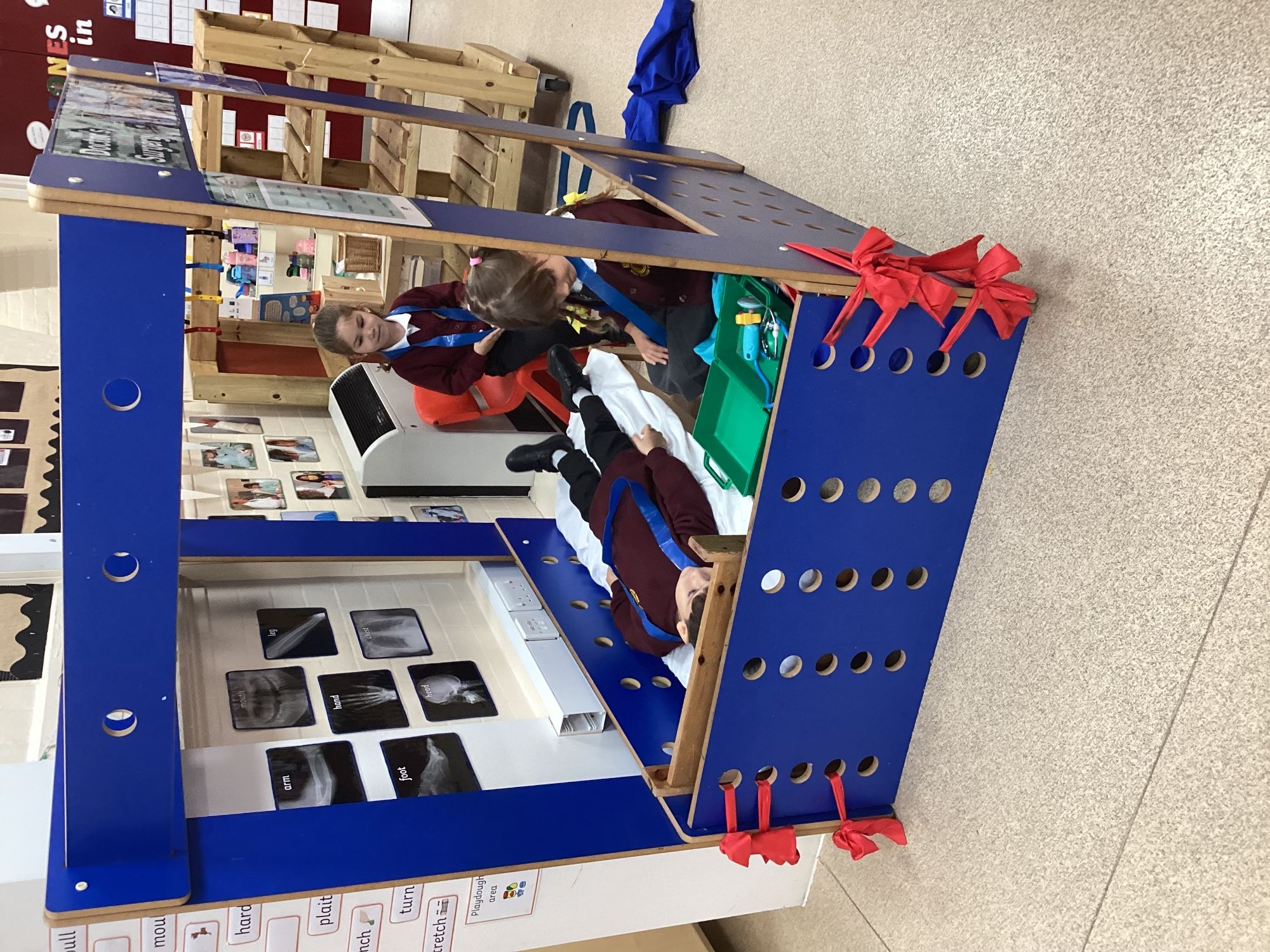 The children have been exploring a doctor’s role-play area! They loved setting up a doctor’s surgery with plenty of bandages and medical equipment. They took on the roles of doctors and patients, explaining which parts of their bodies were “injured” and how to care for them.