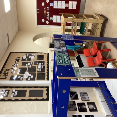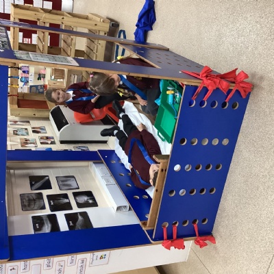 The children have been exploring a doctor’s role-play area! They loved setting up a doctor’s surgery with plenty of bandages and medical equipment. They took on the roles of doctors and patients, explaining which parts of their bodies were “injured” and how to care for them.