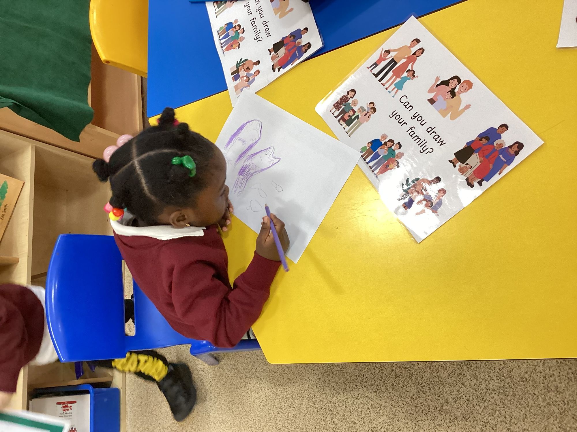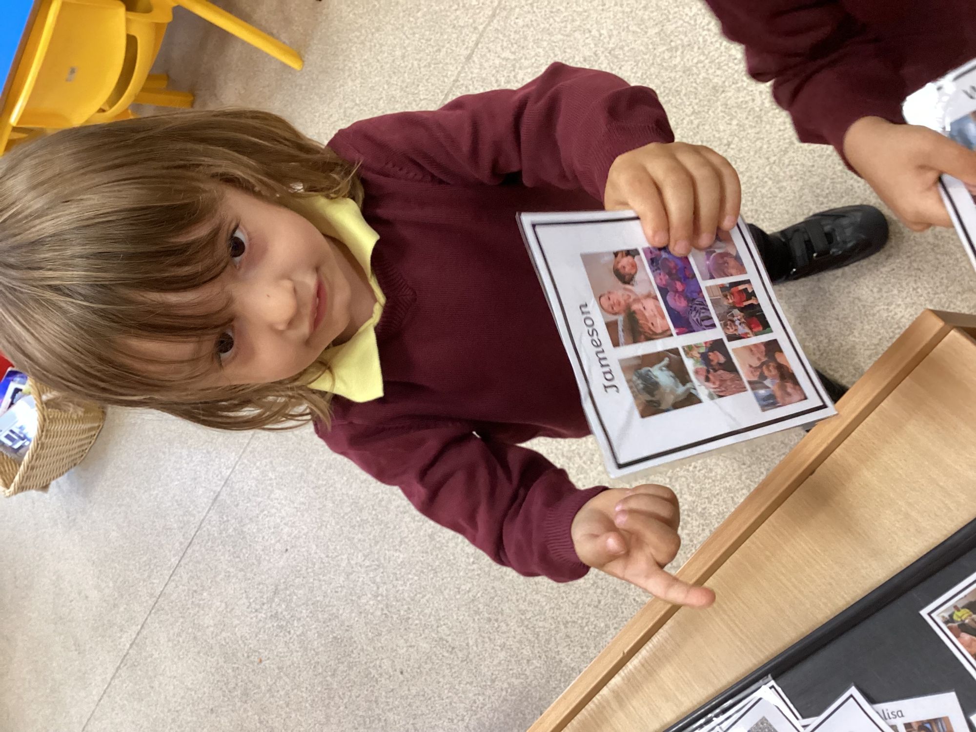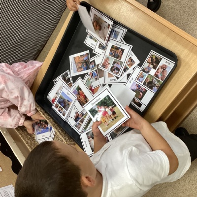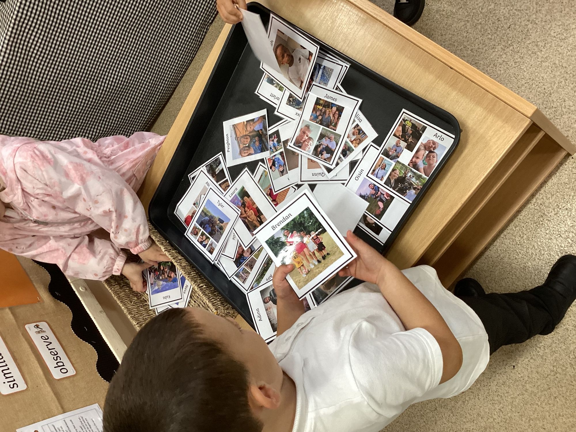 We displayed the children's family photos in the classroom and invited them to talk about the people who are special to them and why. This sparked lots of meaningful conversations, helping the children build confidence in speaking and deepening their understanding of what makes their families special. To support this, we provided small world people of different ages and family roles, along with a small house model and books about families and special people.