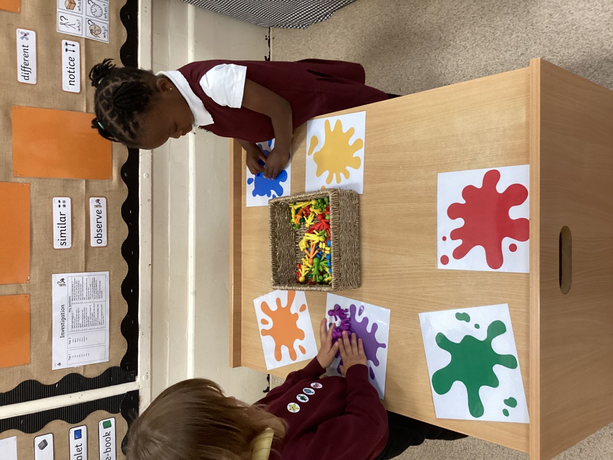 The children enjoyed using colour cards and loose parts to explore sorting by colour, shape, and size. They worked carefully to sort the items, building their observation and categorising skills in a fun, hands-on way.