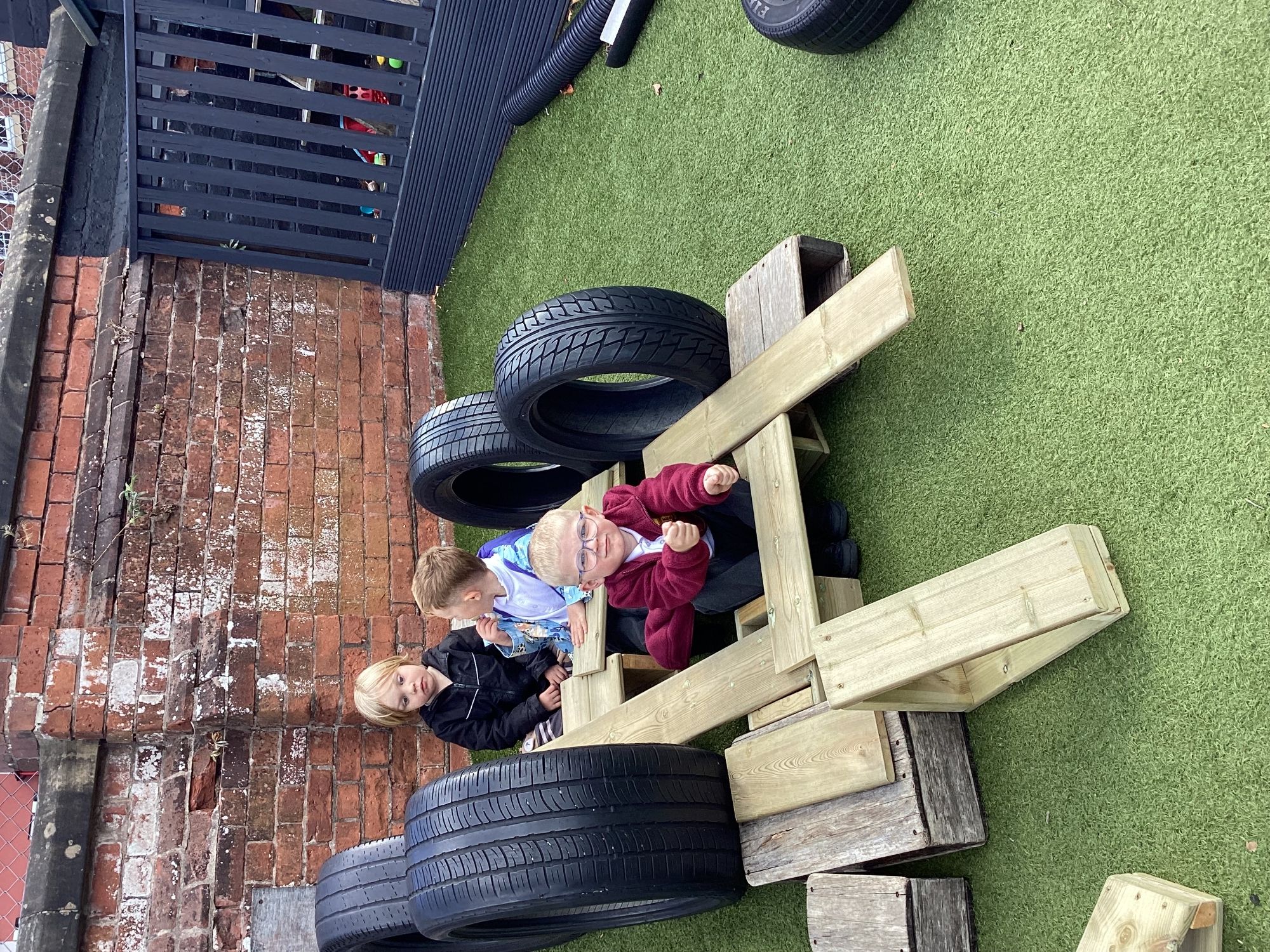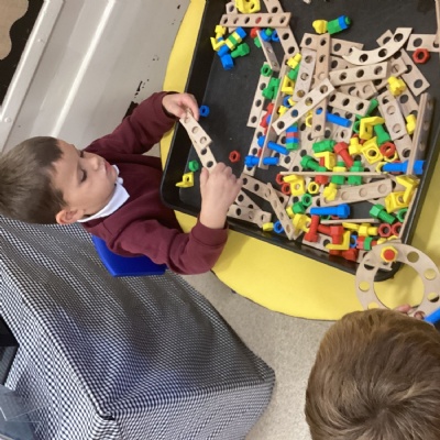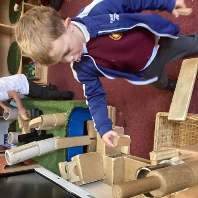 We've been exploring a wide range of resources to build our own models, indoors and outdoors. We have been developing our creativity and problem-solving skills, as well as our physical skills when handling different materials.