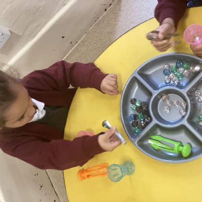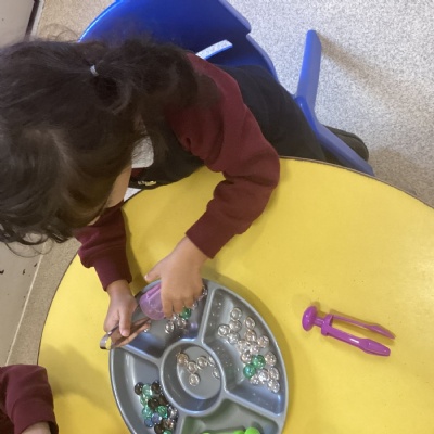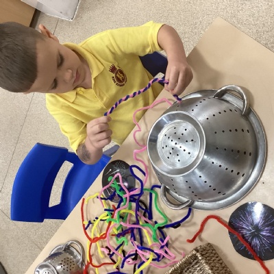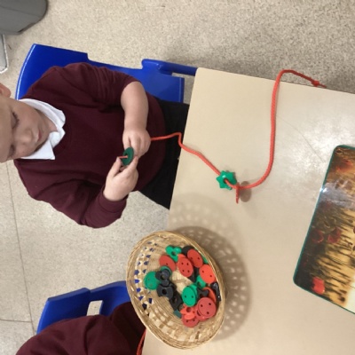 We've been developing our hand-eye coordination, concentration and finger strength. We've been using our fingers and hands carefully to twist and turn.