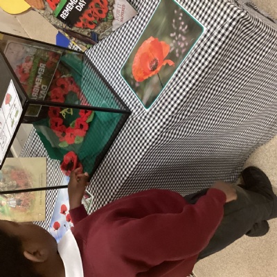 Our teacher showed the children a special item from her box – a poppy. We talked about if anyone had seen one before and what it is for.