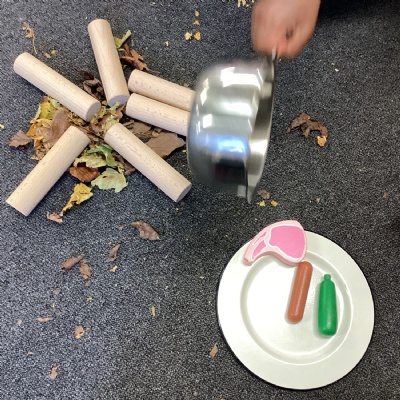 The children used their imagination and created a campfire like the one in the story 'Fletcher and the falling leaves' The children names the foods we cooked on the campfire.