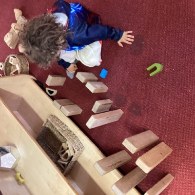 Our construction area has been very popular. We have been creating amazing towers and structures using the different building materials and have worked together with friends cooperatively.