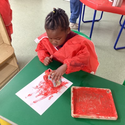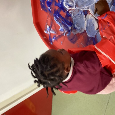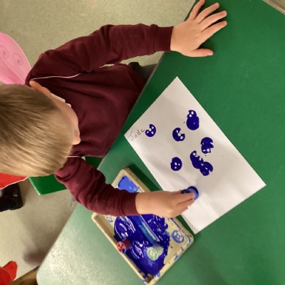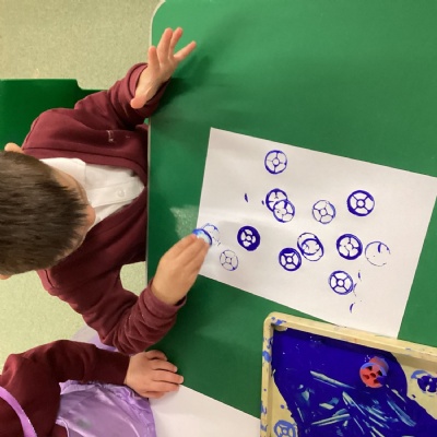 We have been able to explore paint in different ways this week. We used cotton reels to make prints on paper and also mixed paint with shaving foam in a tuff spot.