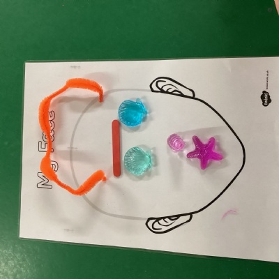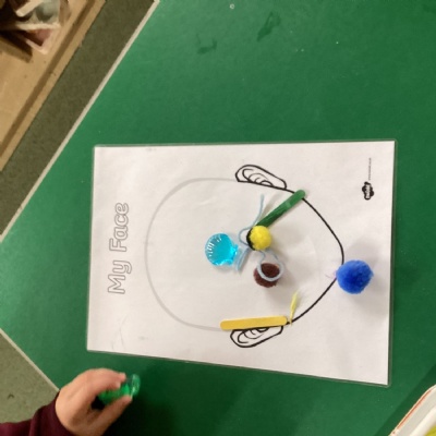 We have explored lots of materials and used them to make a face. We tried to think about our facial features and represent each using some of the loose parts.