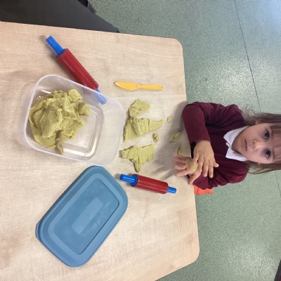 The play dough area has been lots of fun this week. This area helps with our fine motor development as we have practised rolling and cutting the play dough as well as shaping and squeezing it with our hands and fingers.