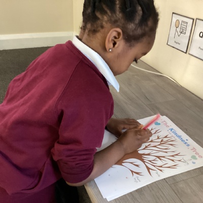 For World Kindness Day, we delivered some gifts of thanks to the people who help us when we are at school. We listened to a story about being kind and made our own kindness tree.