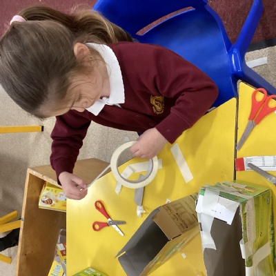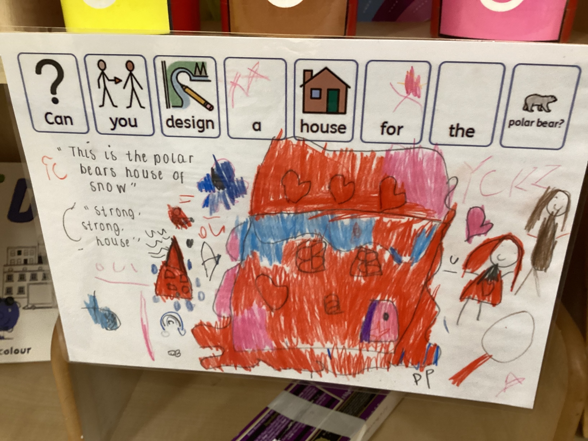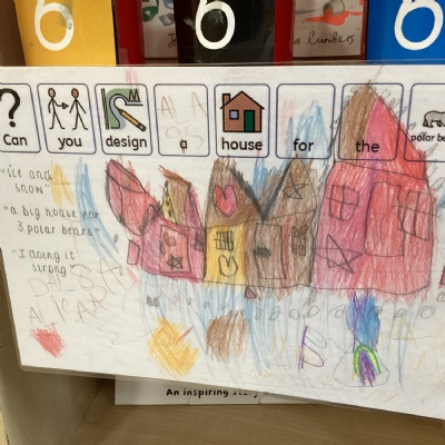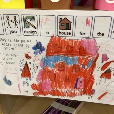We received a letter from Polo the Polar Bear asking for our help! He told us that the Big Bad Wolf might be nearby, and the Three Little Polar Bears need the strongest house ever to stay safe. The children accepted the challenge! They designed, made, and evaluated junk model houses to keep the polar bears safe. They planned their models, chose from materials like boxes, cartons, tubes and lids, built their houses, and then talked about how effective each design would be.