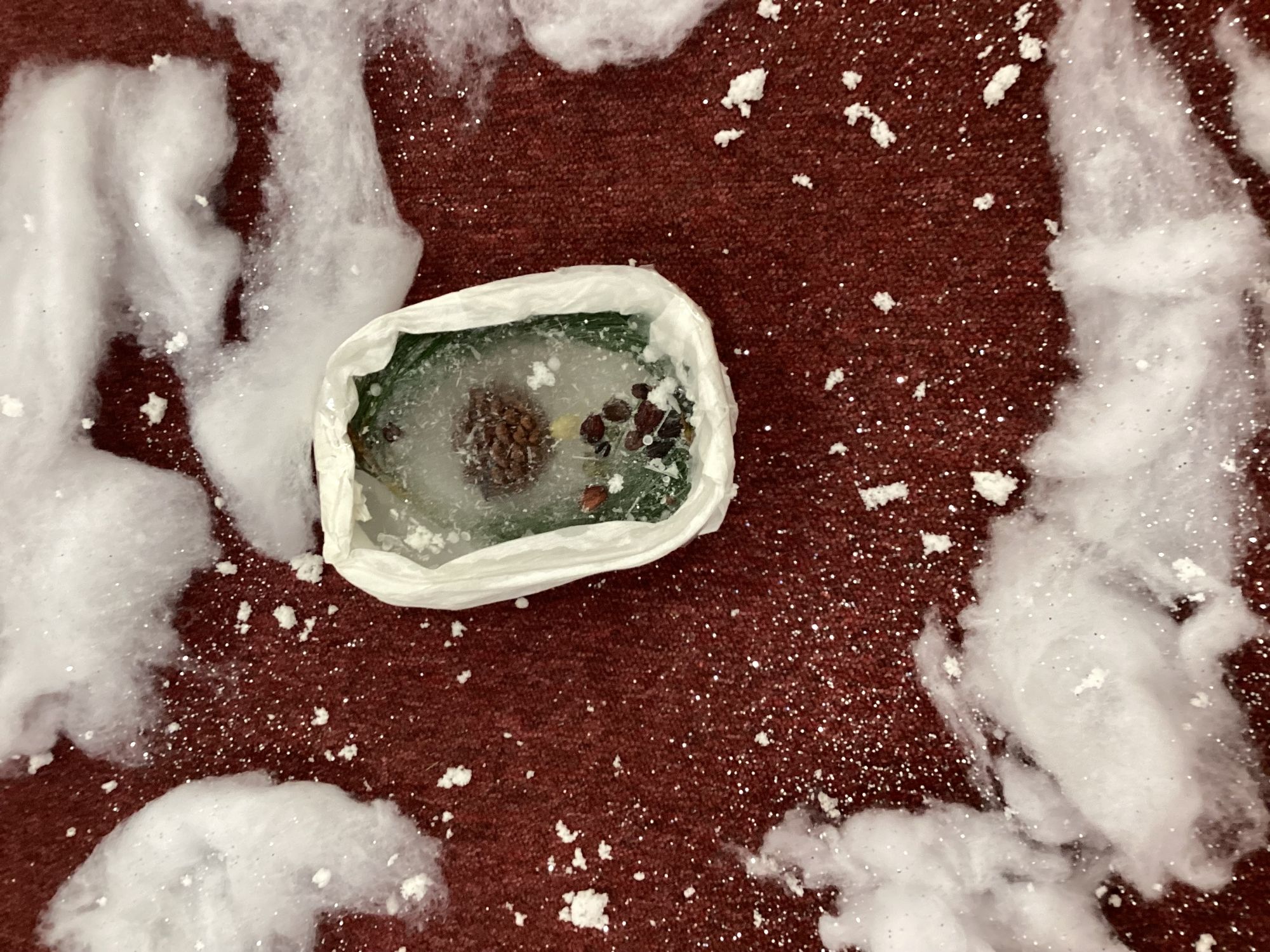 We explored corn flour. They pressed, squished, and ran their fingers through it, noticing how it felt hard when tapped and soft when squeezed. We enjoyed experimenting with the unusual texture and seeing how it could change.