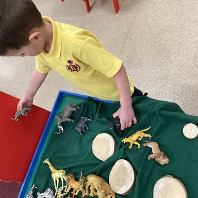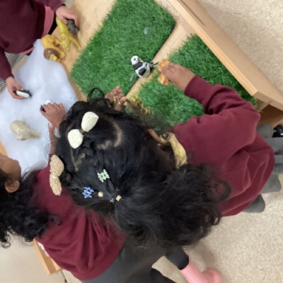 We sorted animals from the rainforest and the polar regions into hot and cold habitats. The children looked at pictures of different animals and decided where they live, noticing how the environment affects what animals need to survive.