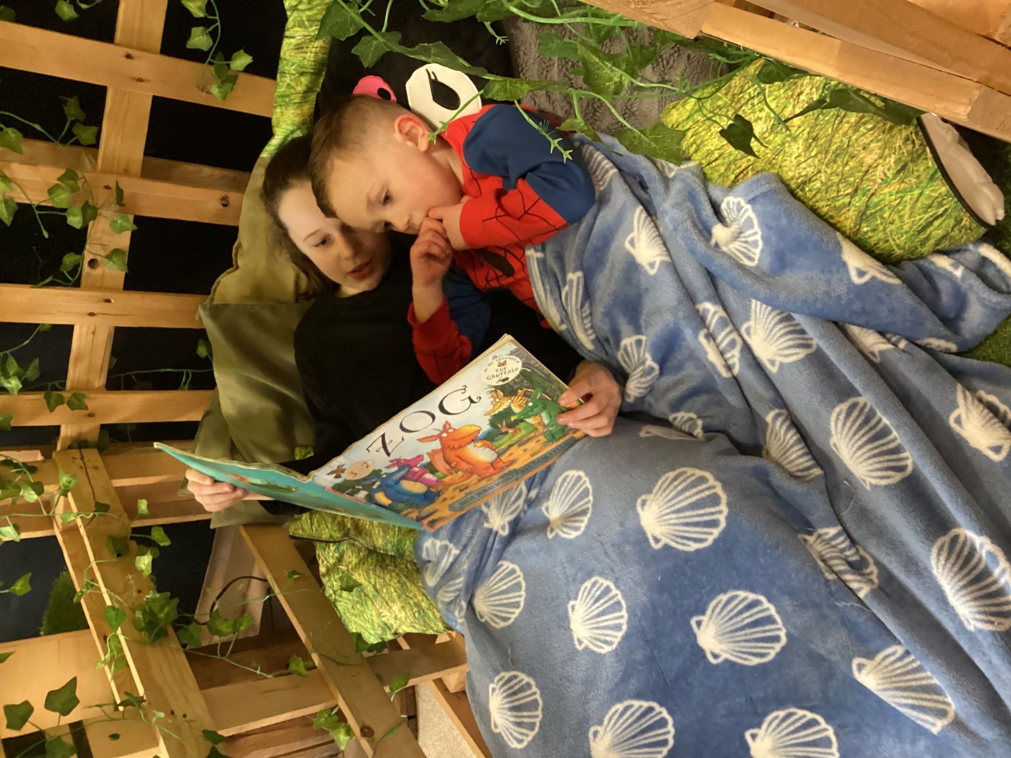 We had a wonderful day celebrating World Book Day on Friday! At home, some of the children took part in our exciting Masked Reader competition. Everyone came dressed in their pyjamas, which made the day feel extra cosy and fun. Throughout the day, the children enjoyed a range of activities inspired by some of our favourite stories. We completed Gruffalo jigsaws, designed our own underpants for Pirates Love Underpants, welcomed a tiger to tea in the home corner, and played a ladybird counting game inspired by What the Ladybird Heard. The minibeasts were also out as we explored activities linked to Superworm. In the afternoon, the Year 6 children came down to F2 for some lovely buddy reading. It was a fantastic opportunity for the younger children to share stories and enjoy reading together with the older pupils.