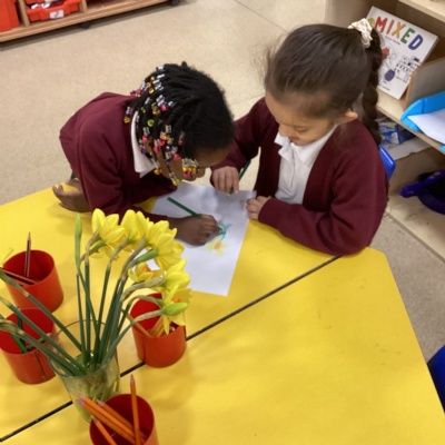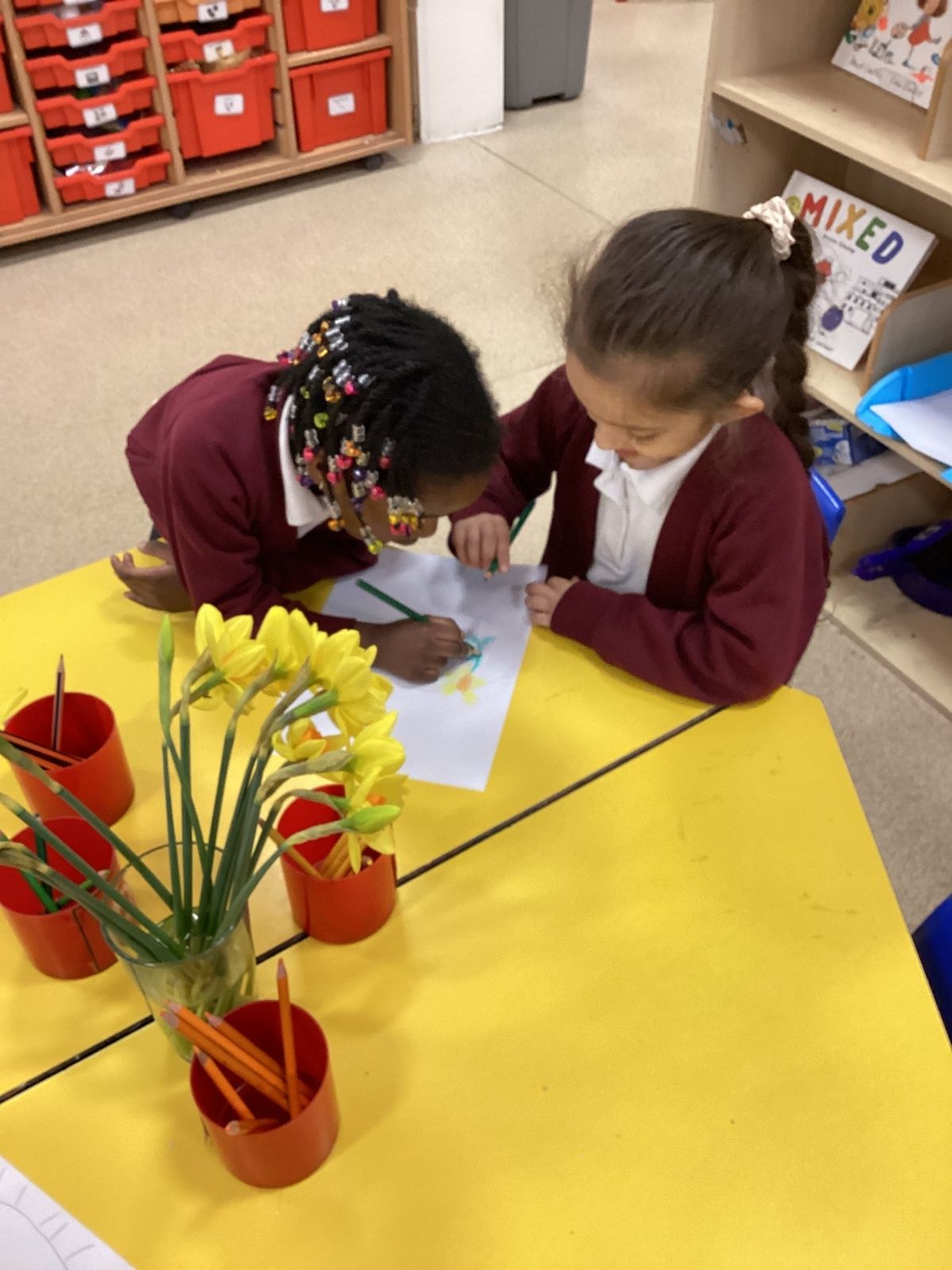 Children made observational drawings of plants and flowers, using a range of media and photographs they had taken as reference.
