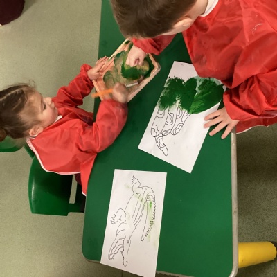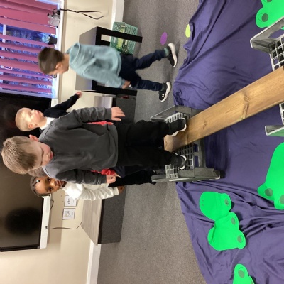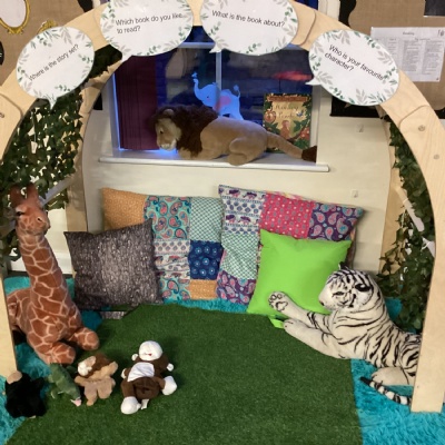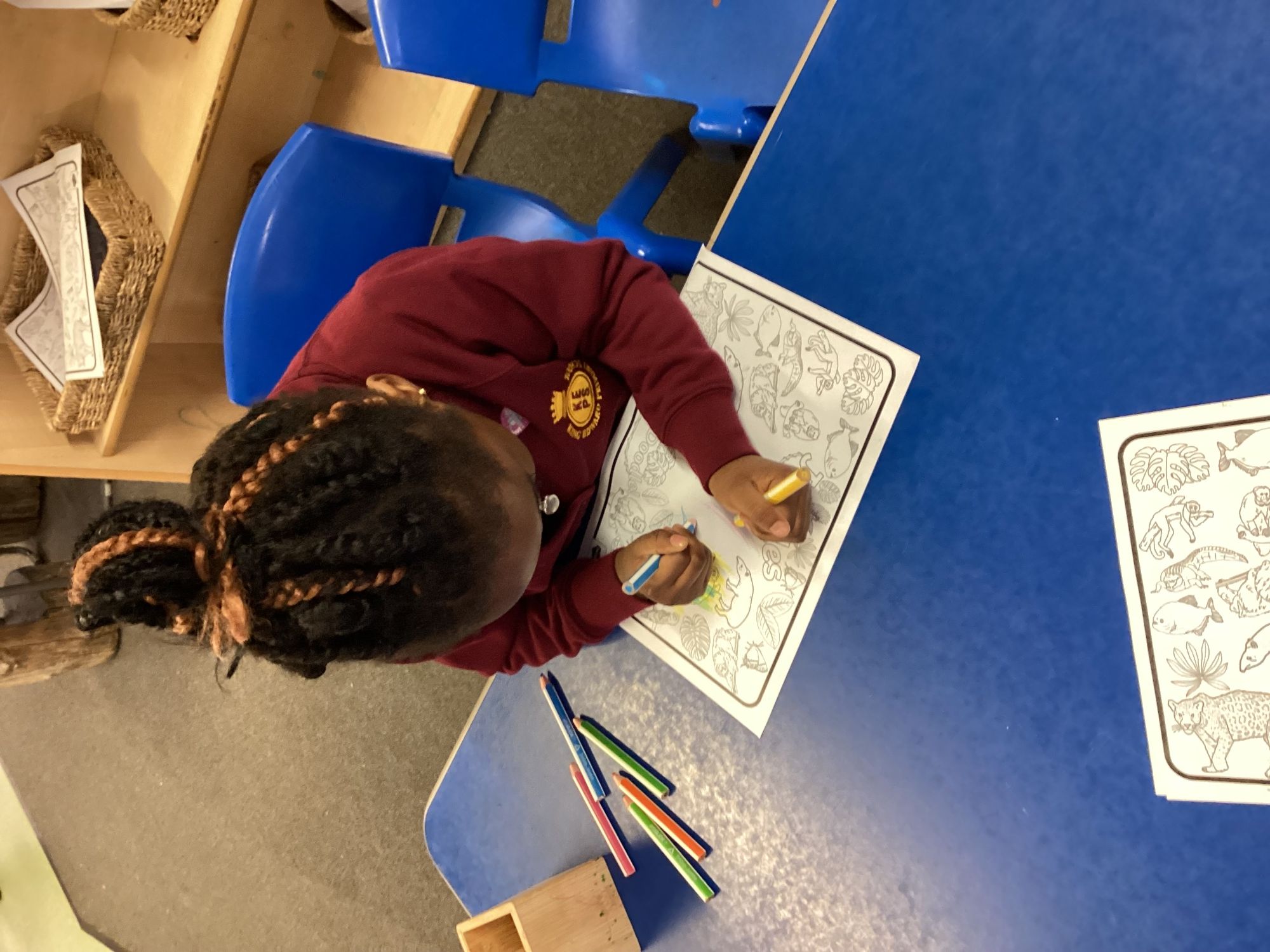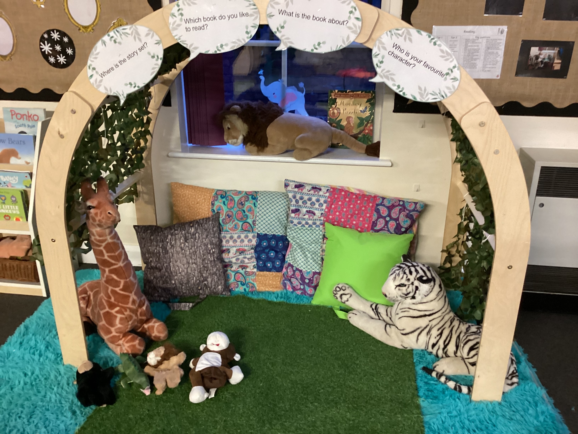 Our literacy topic this week was based on the book Rumble in the Jungle by Giles Andreae. We talked about different animals from the jungle, what they looked like, how they moved and the sounds they made. We also talked about whether then spent their time in water, on land, in trees or in more than one place. We also worked collaboratively to draw jungle animals.