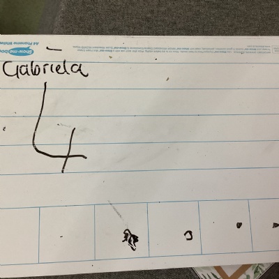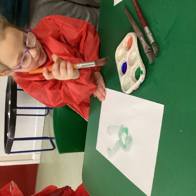 For maths this week, we have been focusing on number 4. We have worked hard at counting to 4, recognising the number 4 and even had a try at writing the numeral.