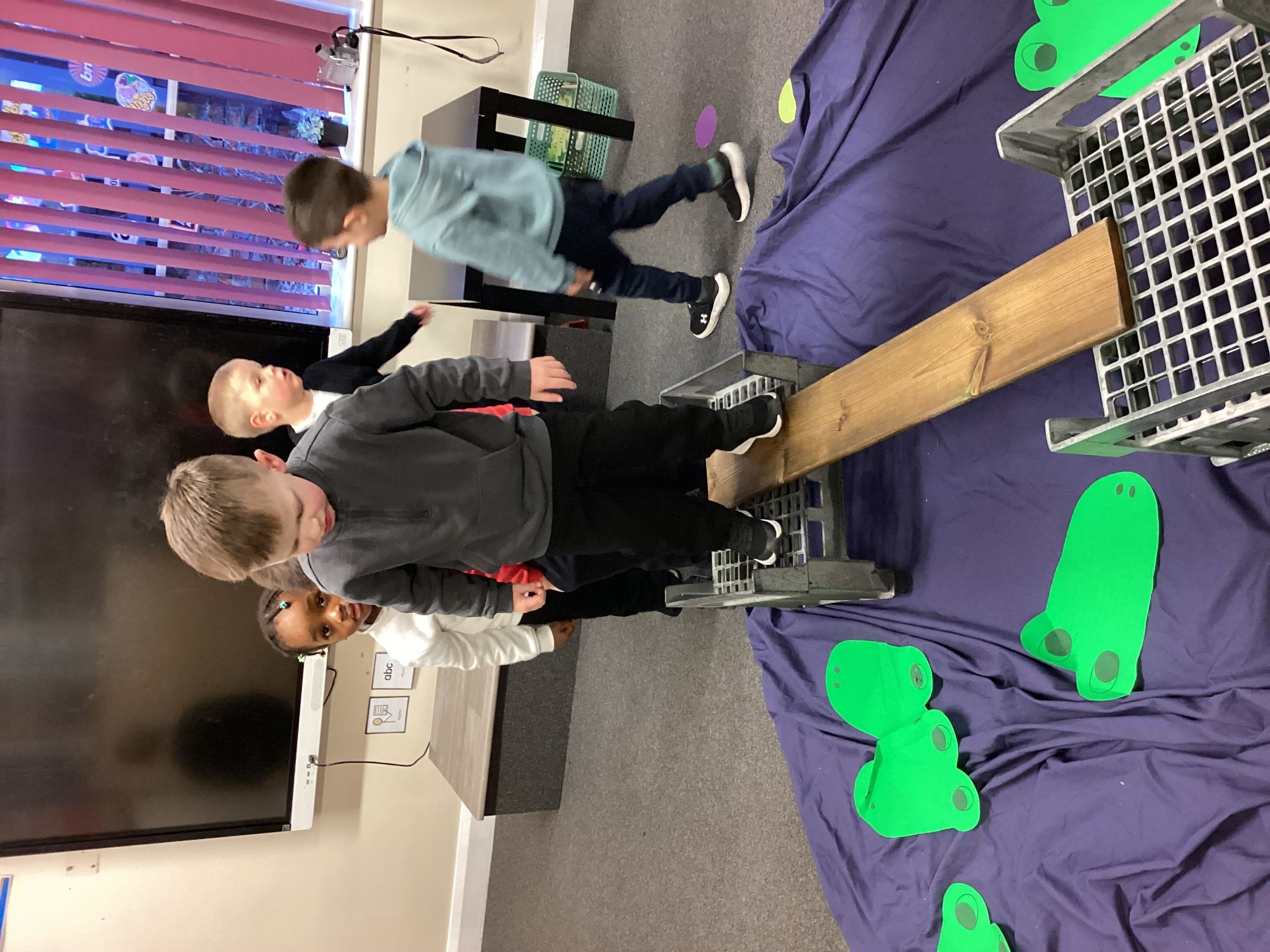 We had a crocodile infested lake appear in nursery on Friday and we had so much fun carefully balancing to cross the bridge. We certainly didn’t want those crocodiles snapping at our feet!