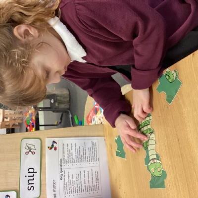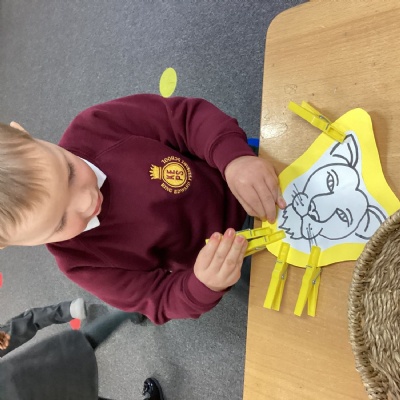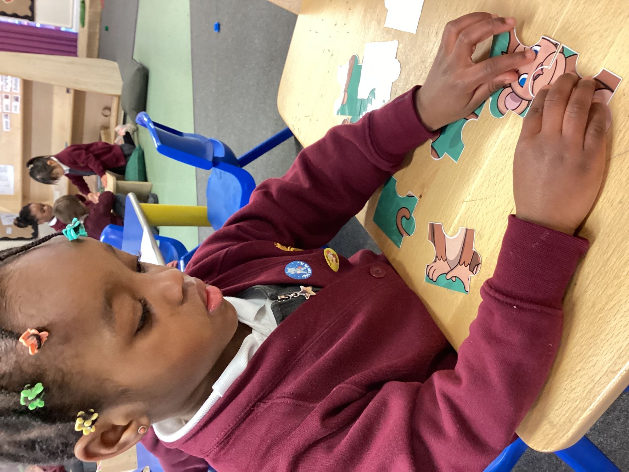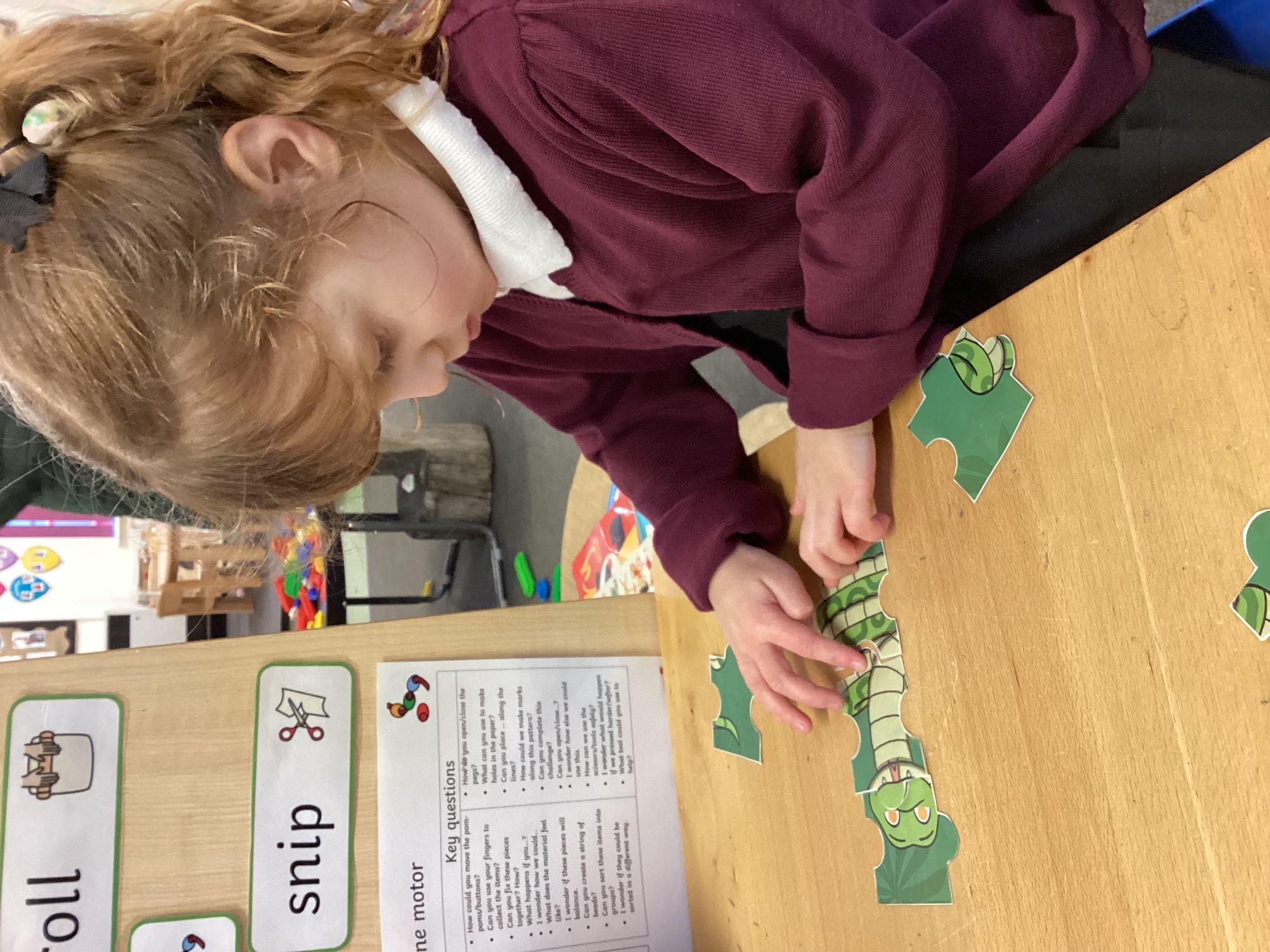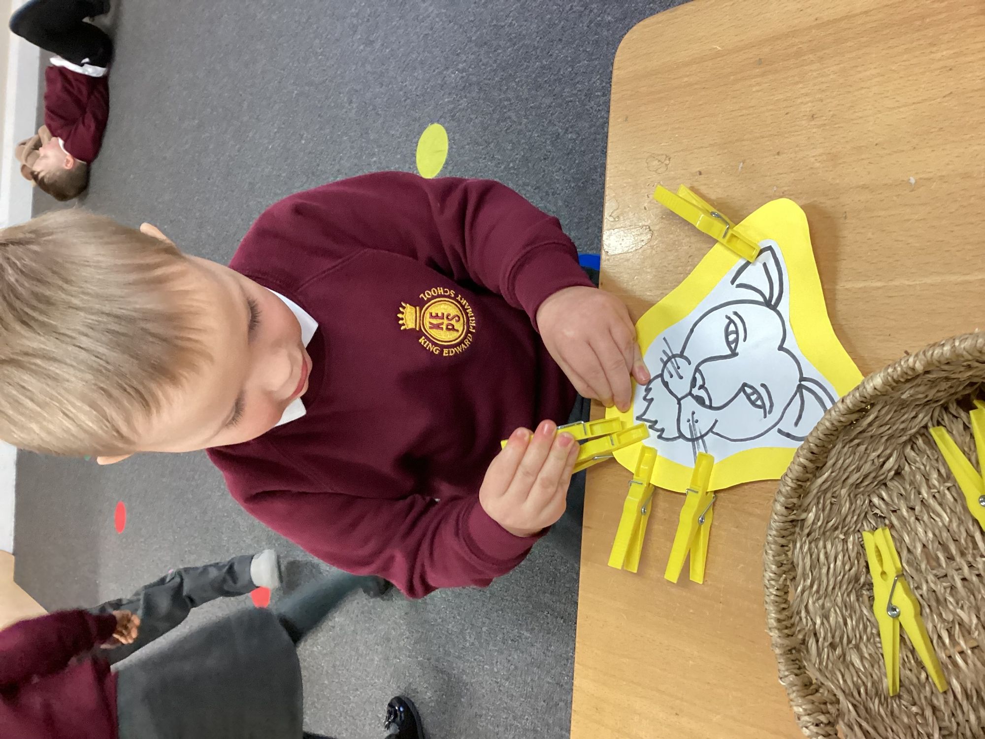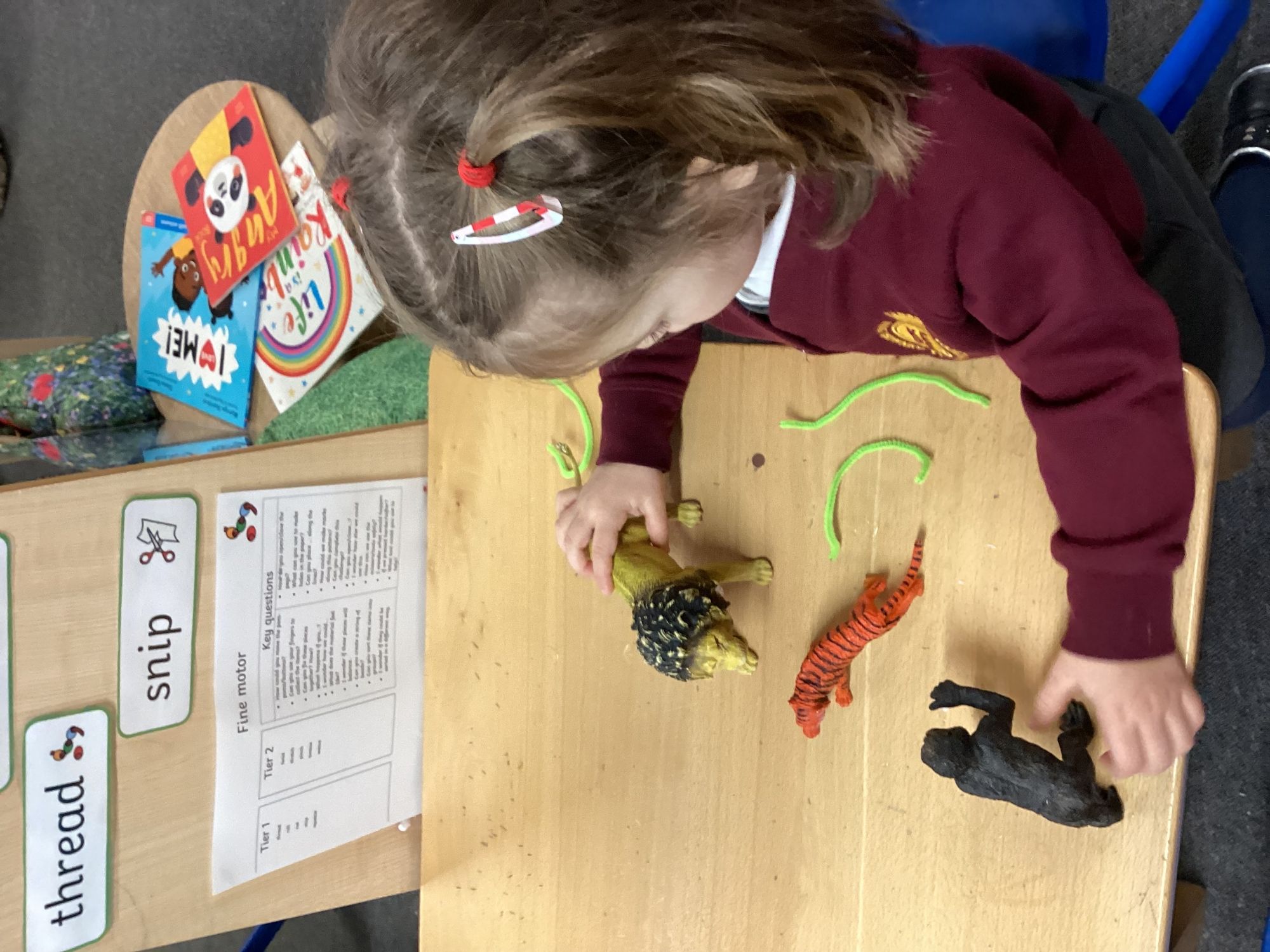 We were able to strengthen our fine motor skills this week by squeezing pegs to make a lion’s mane, helping animals escape from the jungle vines by unravelling them and writing our names. We also loved the jungle animal jigsaws.