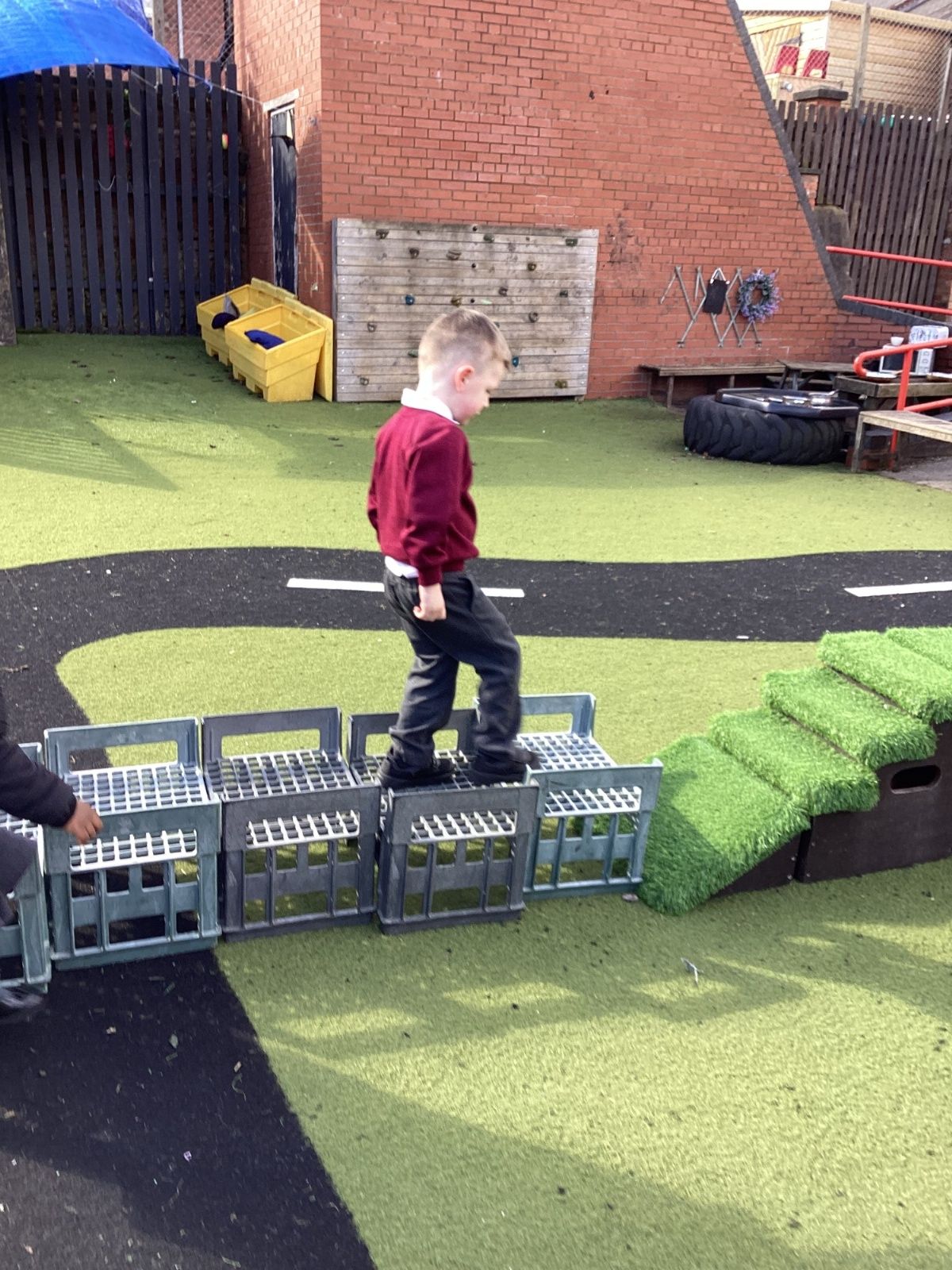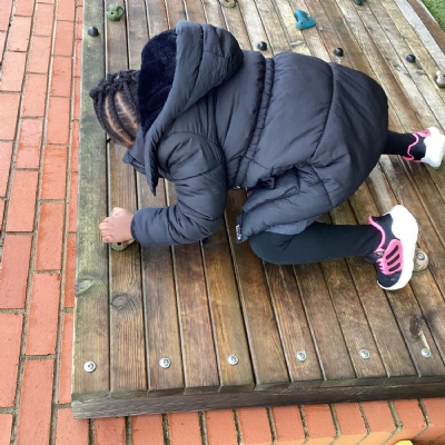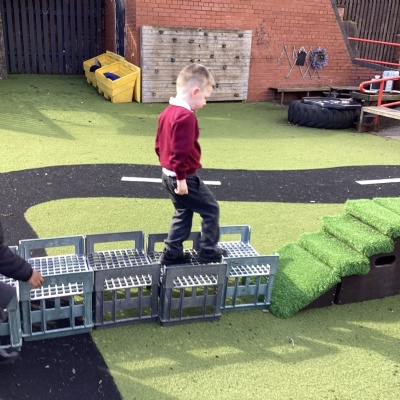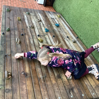 This week we have really enjoyed using our gross motor skills. We have climbed, balanced and jumped. We have even had some tummy time on the big carpet to strengthen our core muscles.