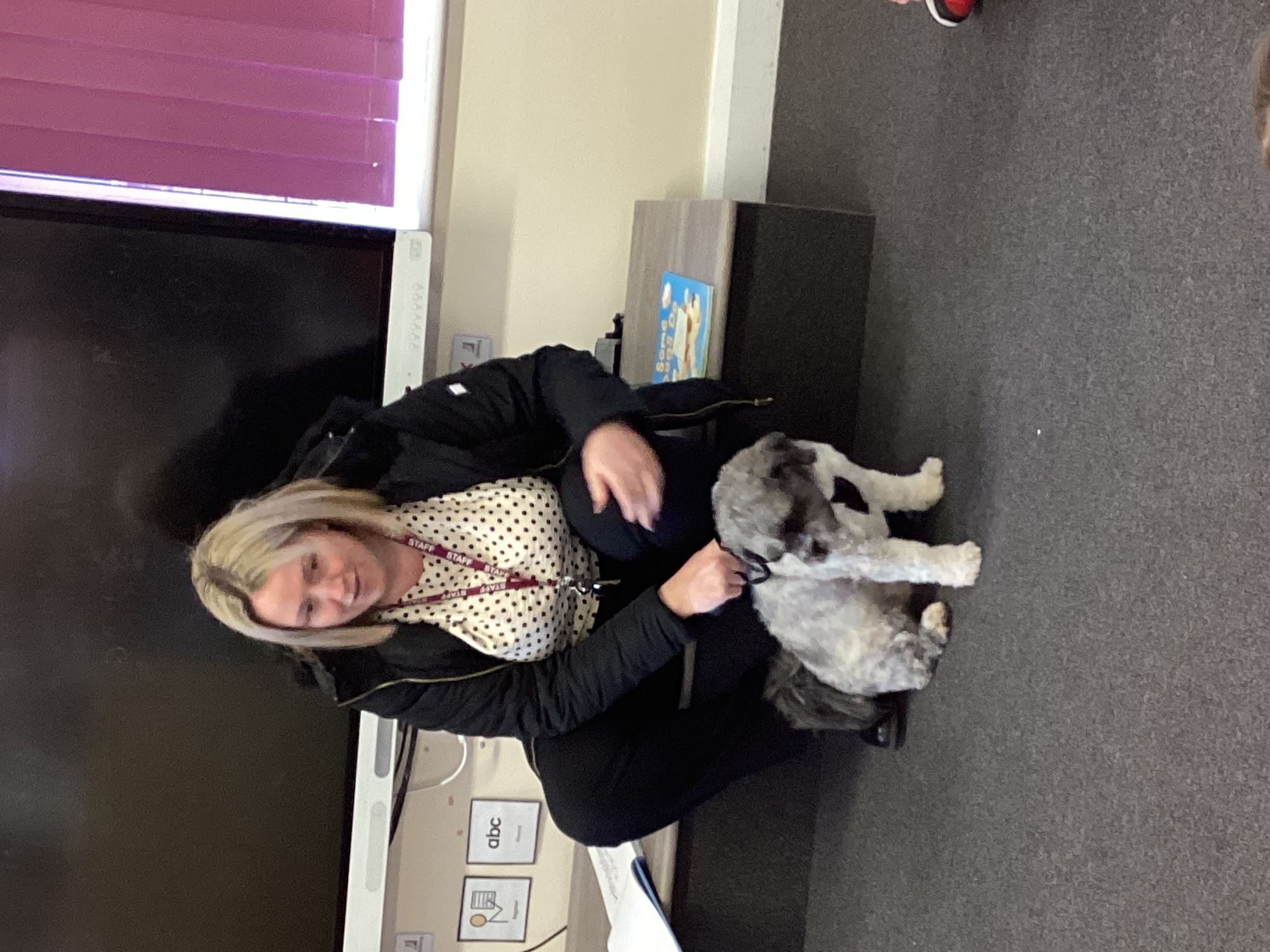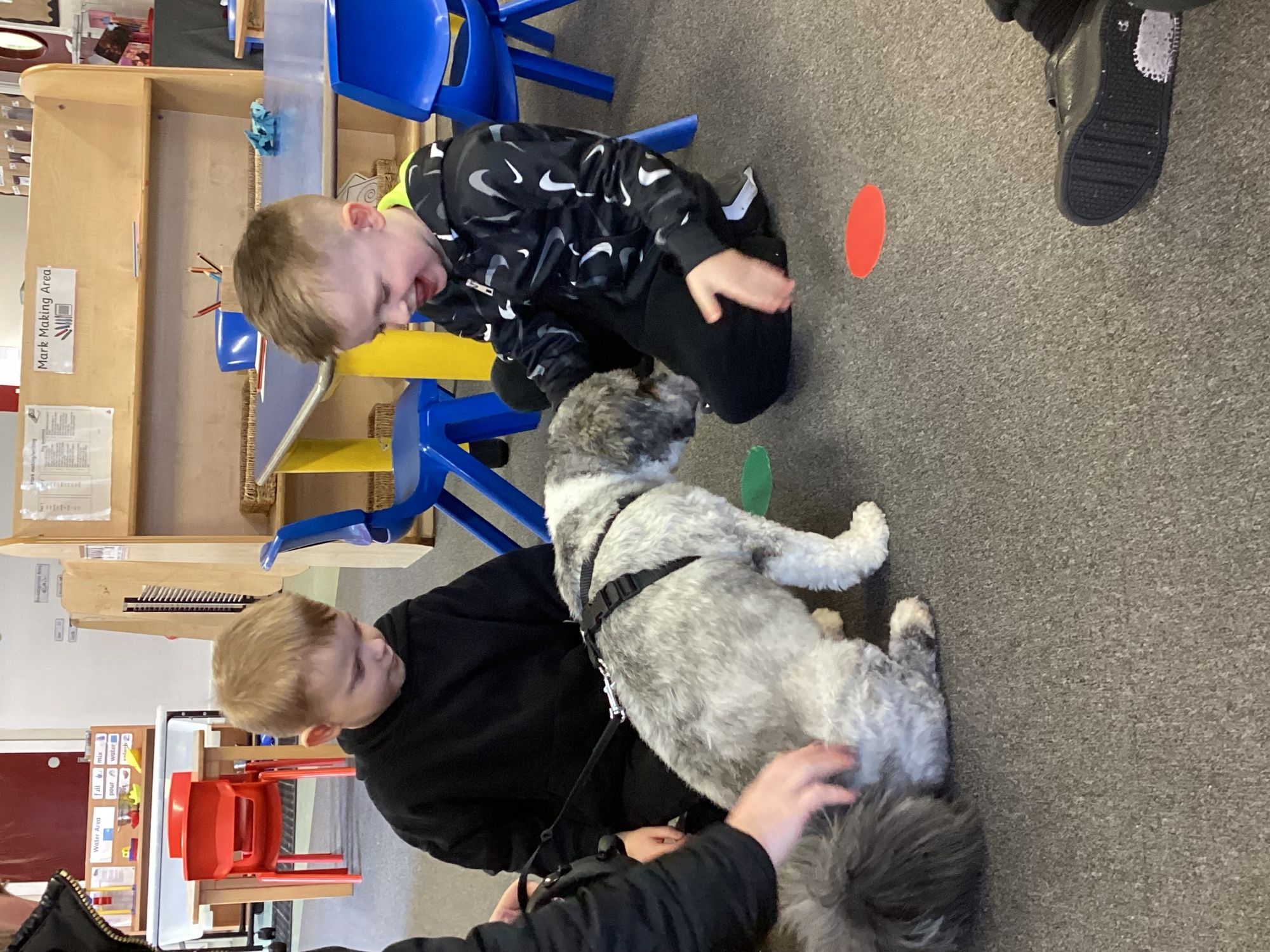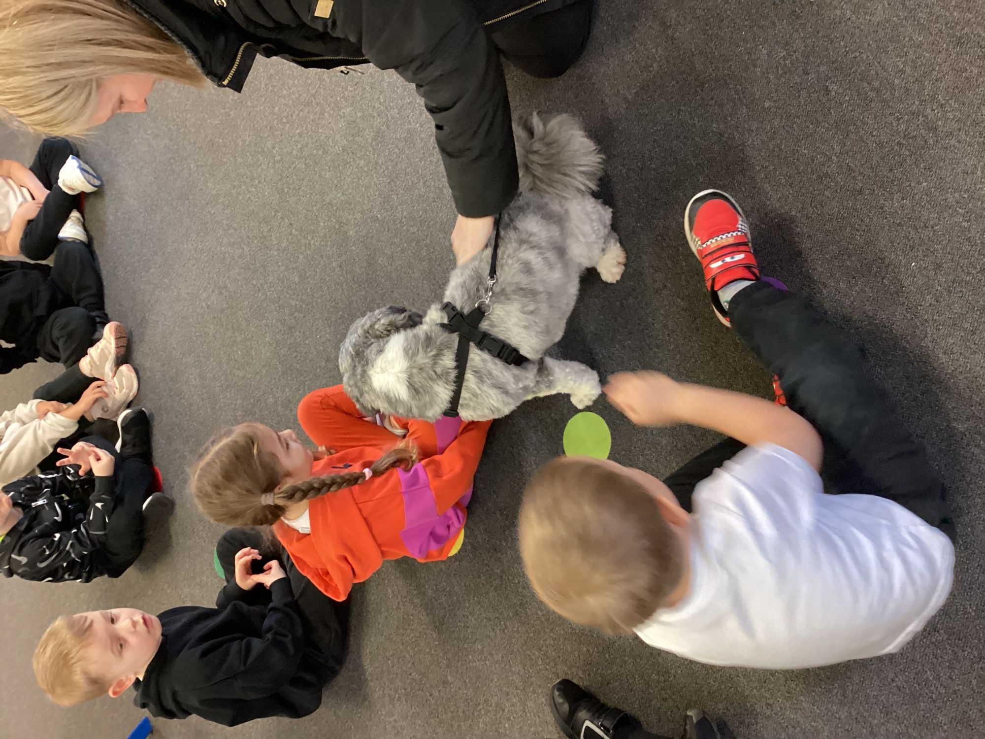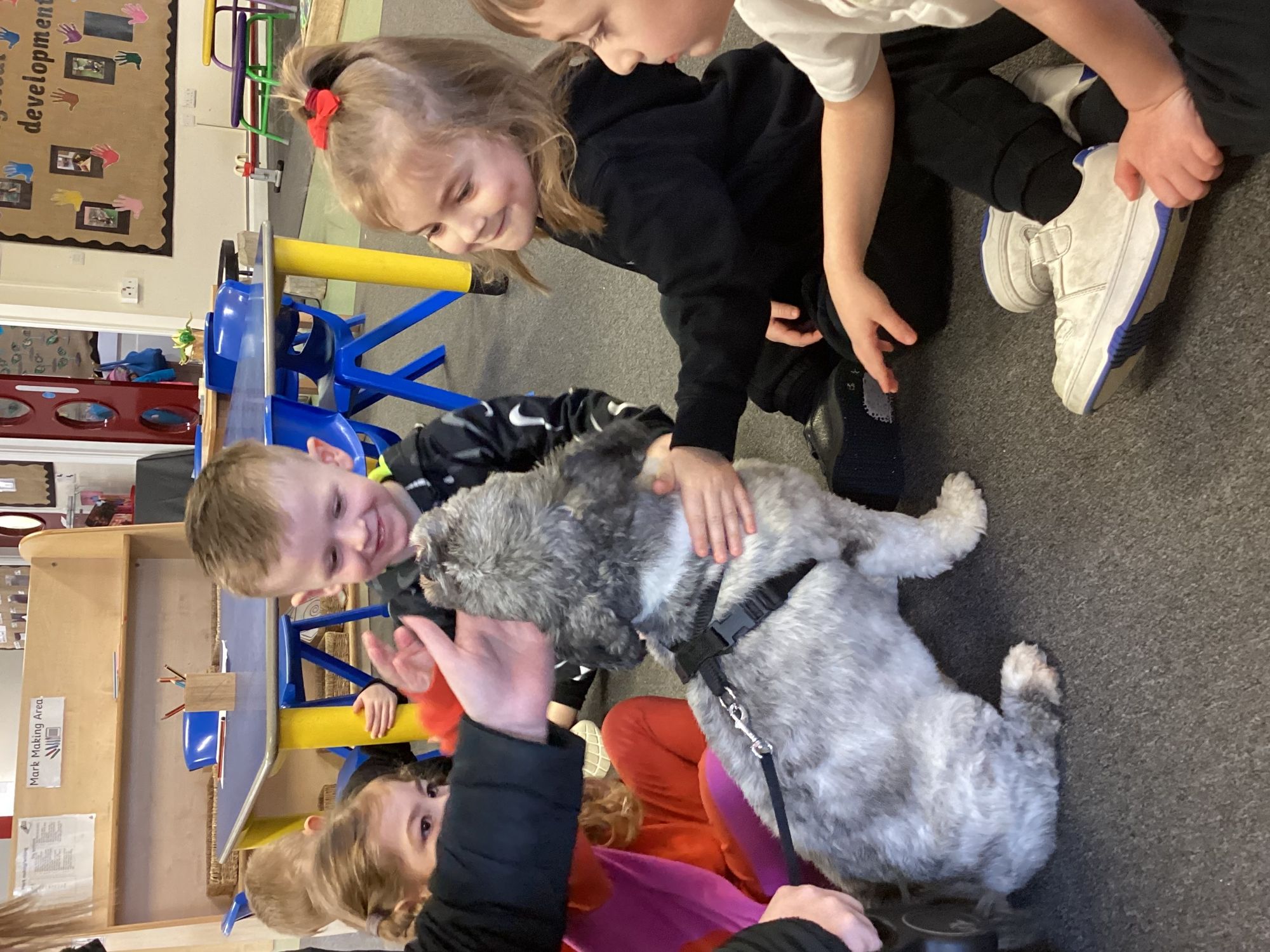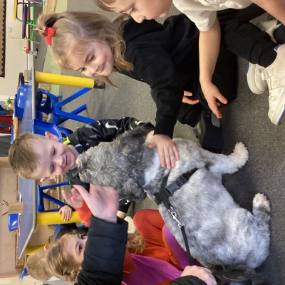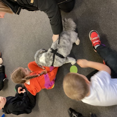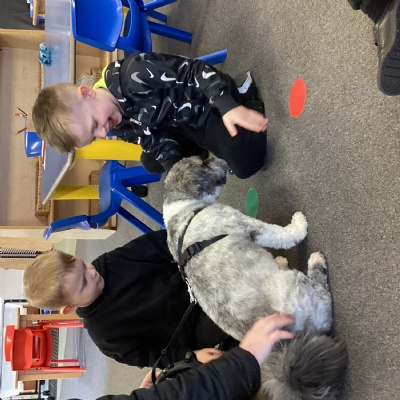 We had another mystery reader come to see us this week, we were a little confused by the clues and were so surprised to see a dog in school to read with us!