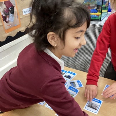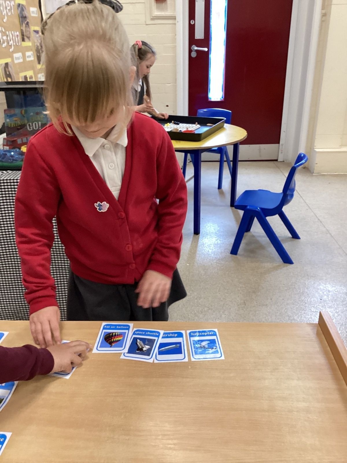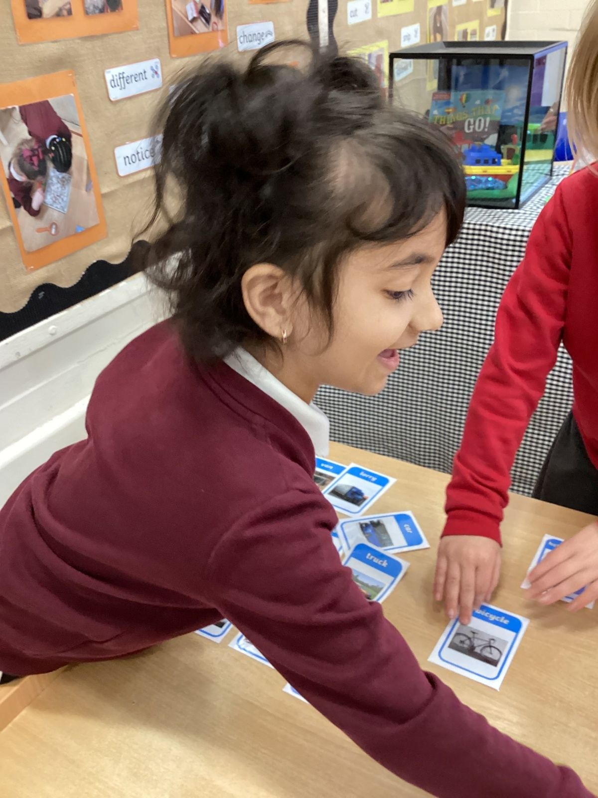 We explored different types of transport and how they move. We looked at pictures of vehicles and talked about how some travel on land, in the air, or on water. The children worked together to sort the pictures into groups depending on where each vehicle travels. As we did this, the children noticed different features of the vehicles, such as wheels, wings, or propellers, and discussed why they help the vehicle move in certain places.