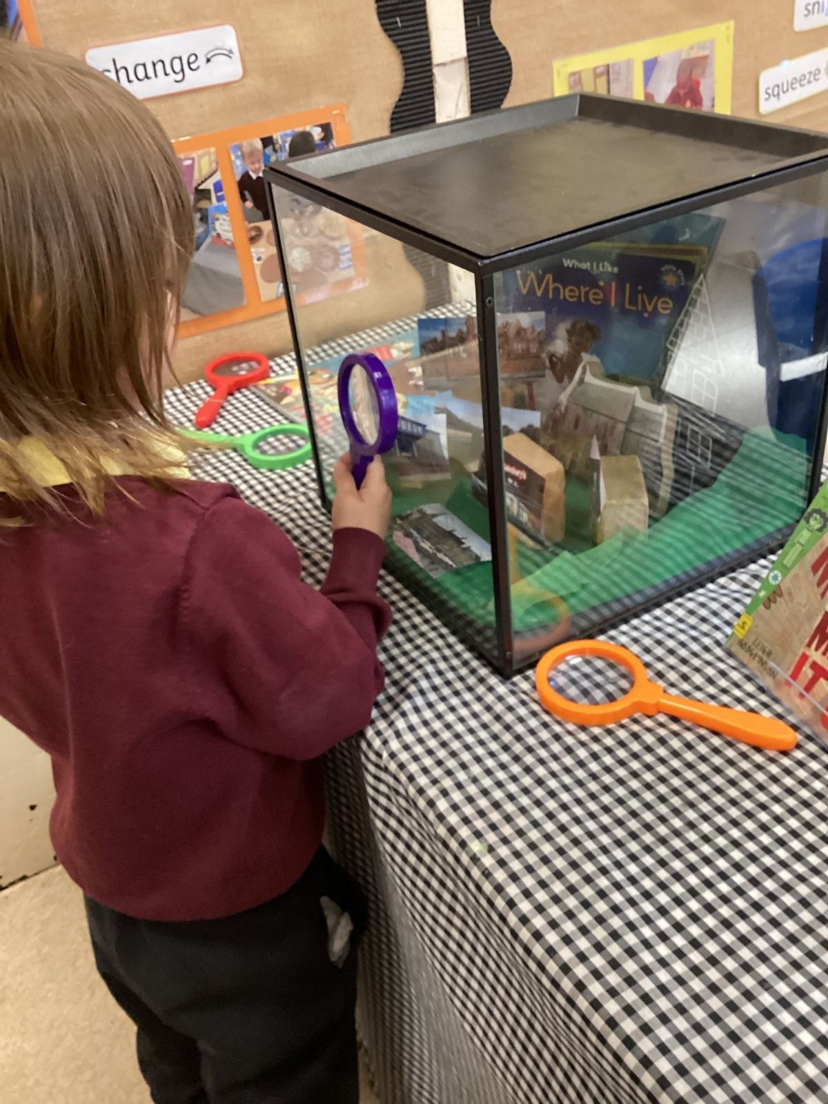 We also explored our local community by looking at photographs of familiar places such as the school, small bus, local shop, park, library, and a wooden house. The children talked about places they recognised and shared their own experiences of visiting them. We discussed how we travel to these places, linking our learning about transport to real life in our local area. This helped the children make connections between their learning and the world around them.