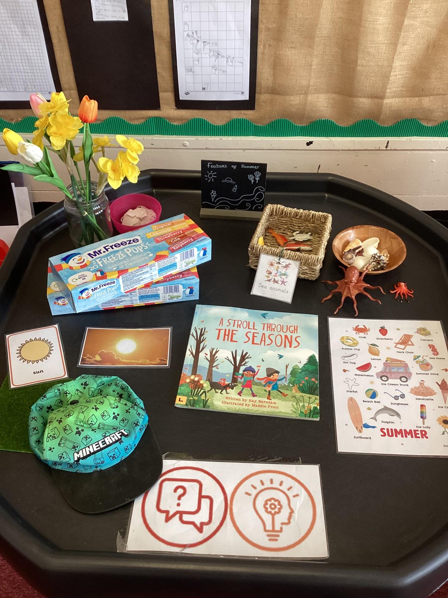 We have been doing lots of practise for Sports Day, as well as learning about features of summer as it has been very warm outside. We are also looking at time in Maths and geographical features in Geography.